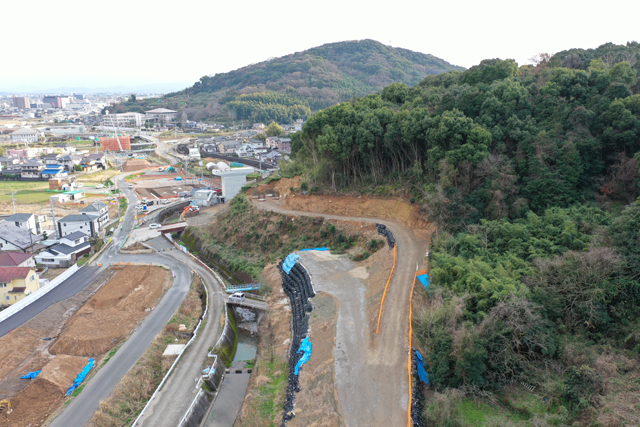 補強土壁(ジオテキスタイル):右側47.6m 左側11.9m